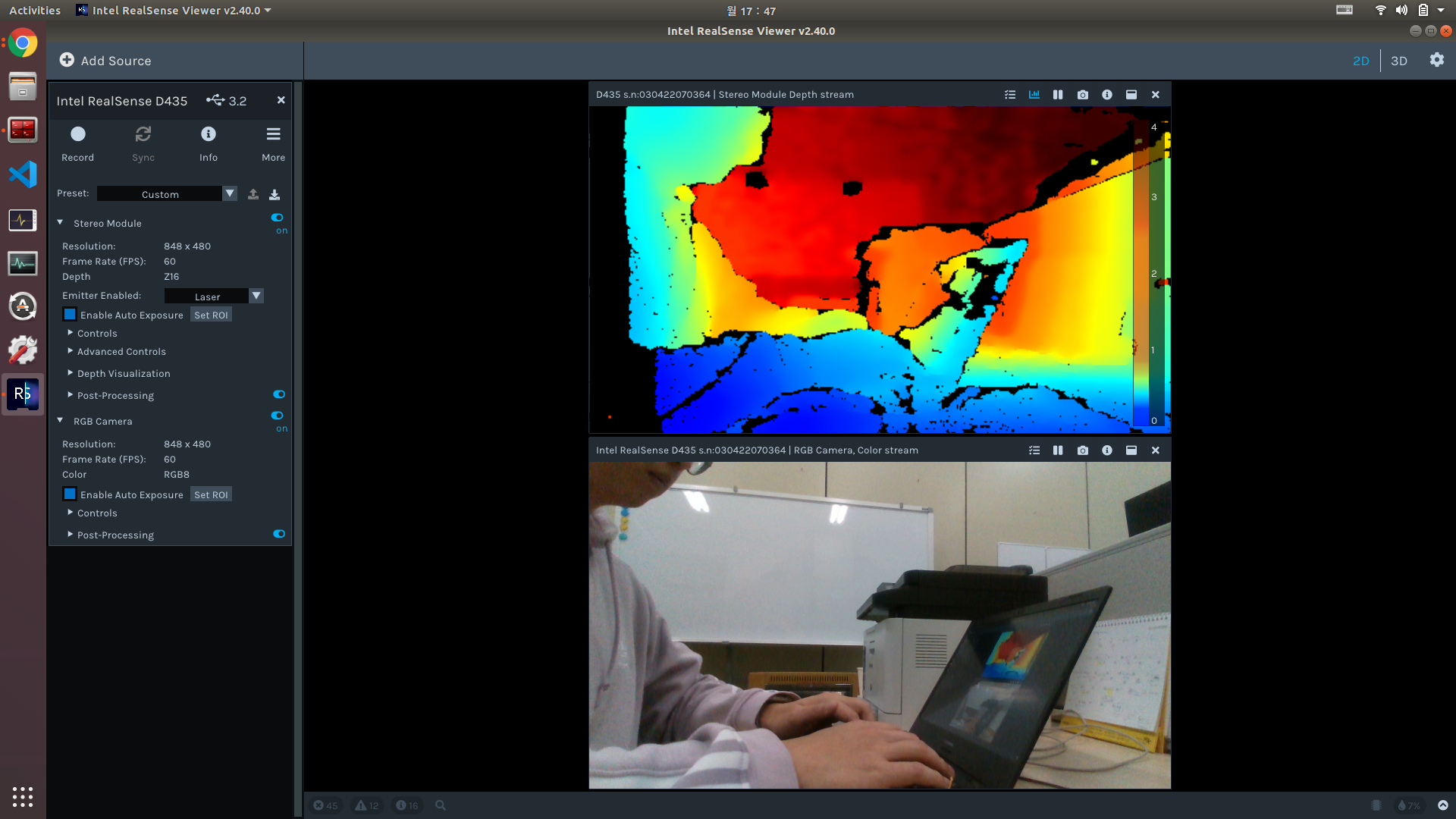 알아두셔야 할 것이, d435 depth camera는 패러렐즈 가상 우분투에서 인식하지 못합니다.
